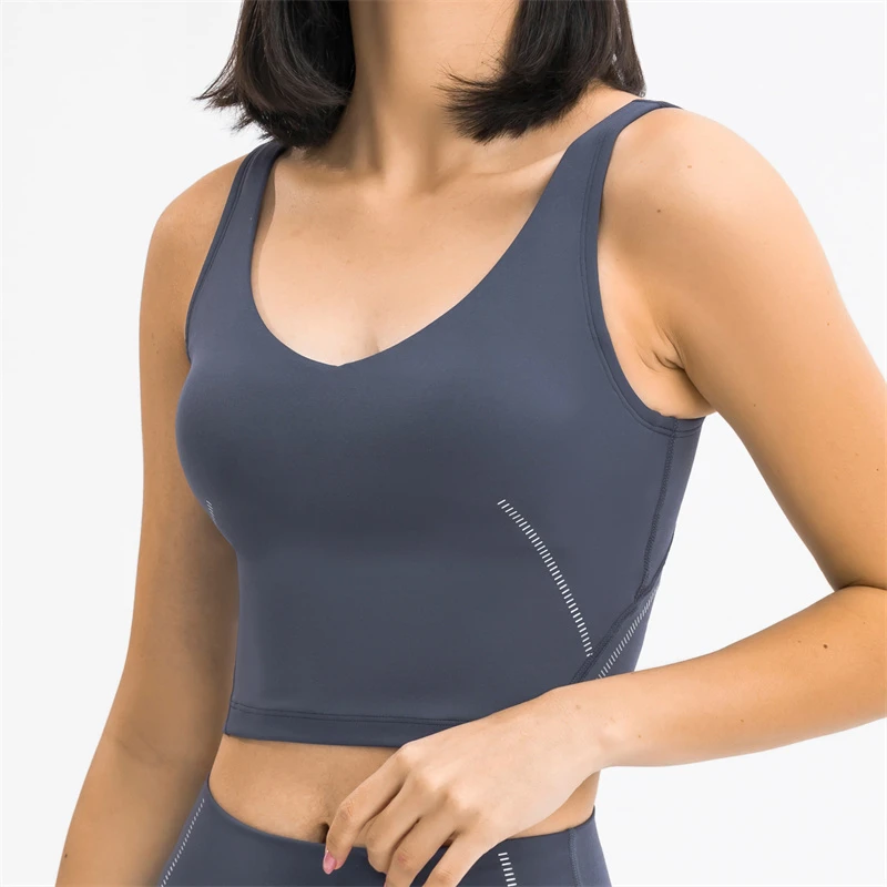 Nepoagym Pure Women Stripe Printing Brushed Sports Bra Longline Workout Crop Tank Top With Built In Bra Medium Support Sports Bras Aliexpress